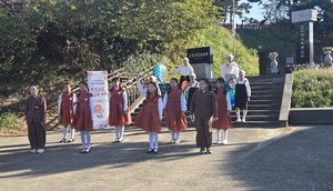 “백삼십이개 별 섯알오름 뜰 때 붉은 동백꽃 피로 물드네. 바당 보름 거칠어도 우리 마음 굳세게 피눈물로 기도했네. 피눈물로 기도했네. 제주가 살았다. 제주가 살았다. 한라가 춤추고 바다가 노래해. 에헤이 데헤이 제주가 살았다.”15일 오전 제주도 서귀포시 대정읍 상모리에 위치한 섯알오름에서 노래 ‘제주가 살았다’가 대정 몽생이 합창단에 의해 울려 퍼졌다.‘제주가 살았다’는 3·1운동을 이끌었던 유관순 열사가 옥중에서도 독립 의지를 담아 노래했던 것으로 널리 알려진 ‘대한이 살았다’를 개사한 곡이다. 익숙한 멜로디에 가사도 귀에 속