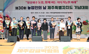 제주도는 21일 서귀포농업기술센터 제주국제감귤박람회장 야외무대에서 ‘제30회 농업인의 날 제주특별자치도 기념대회’를 개최했다.제주도농업인단체협의회(회장 김필환)가 주관했으며 1996년 첫 개최 이후 올해로 30주년을 맞았다. 도는 이날 제주 농업 발전에 공로가 큰 6명의 농업인에게 ‘제주특별자치도 농업인상’을 수여했다.수상자는 △일반작물 송철주 △감귤 김덕문 △친환경농업 양희전 △축산 강필석 △유통가공 오정자 △여성농업 정문경이다. 이와 함께 △중앙 단위 포상 10점 △우수농업인 23점 △감사패 5점 등도 전수됐다.김애숙 제주도 정