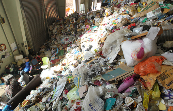 최근 재활용쓰레기 부류 및 처리를 담당하는 ‘제주시리싸이클링센터’에는 매일 반입되는 재활용쓰레기가 산더미처럼 쌓여가고 있다.