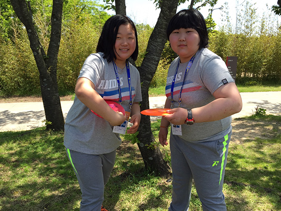 전국장애학생체육대회에 디스크골프 제주 대표로 참가한 김소현·김지원(17·여·지적장애·제주고) 선수가 전북 대표와 경기를 하고 있었다.