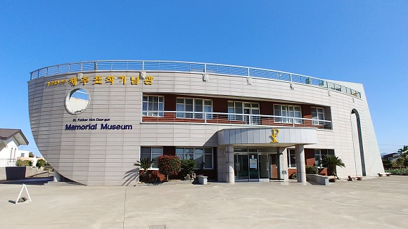 기념관 1층에는 인포메이션, 유해실, 영상실 등이 있으며 2층은 전시실로 구성되어 있다. 전시실은 김대건 신부관, 제주교회사관, 선종사제관 등으로 꾸며져있다. 특히 당시 표착 모습과 첫 번째 미사 봉헌 장면을 재현한 모형이 눈길을 끈다. 3층에는 가슴이 탁 트이는 옥상 전망대가 있어 순례길을 돌아보며 김대건 신부의 숭고한 정신을 다시한번 되새길 수 있다.