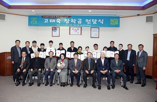 제주시 한경면 출신 재일교포 고태숙(73) 장학금 전달식이 지난 24일 제주시청 회의실에서 고경실 제주시장, 고승화 제주사회복지공동모금회장, 대학생 및 학부모 등이 참석한 가운데 열렸다.