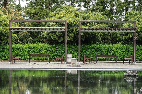 '거울연못'위 미술관은 그 자체가 예술이다. 연못에 비친 하늘과 미술관...소금쟁이가 구름을 타고 놀고 있다. 바람이 불면 간간이 놓인 제주 돌과 작품의 그림자가 흔들리며 그것 또한 예술이 된다.