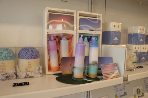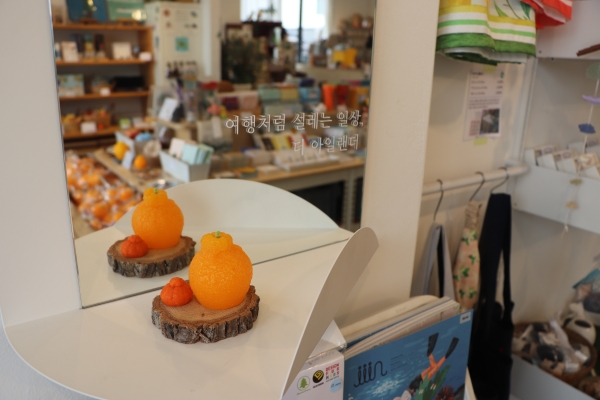 이 외에도 현 사장과 공방 작가들의 아이디어를 모아 새롭고 제주다운 선물들을 계속 만들어 내고 있다. 제주해녀 배지, 바다의 색이 그라데이션 된 향초, 모빌이 되는 현무암모양 초 등. 이 외에 다른 샵에서 파는 품목, 해외에서 들여온 소품도 섞여 있다.