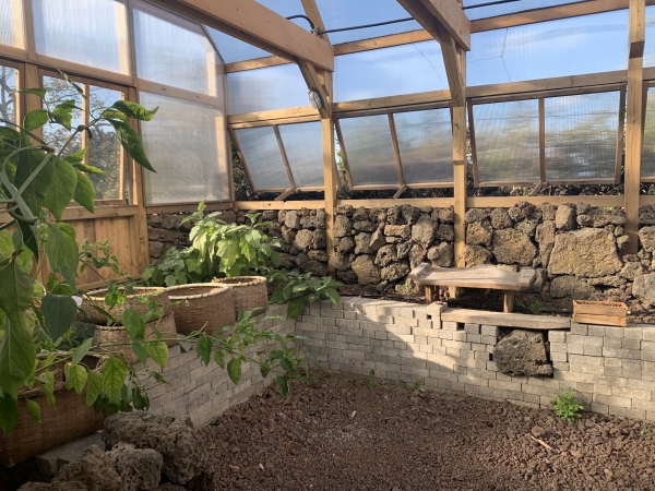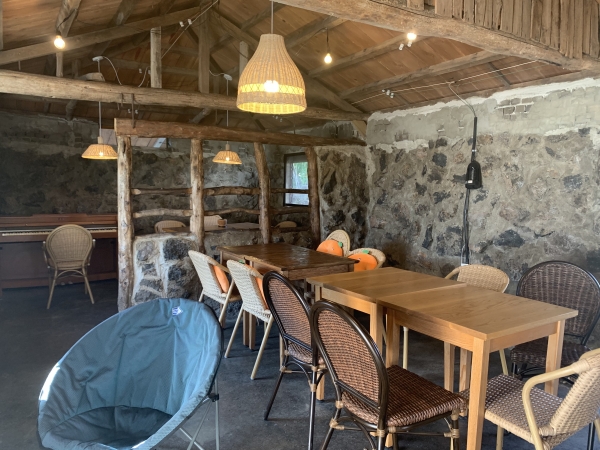 카페는 당근 밭을 포함해 총 350평 규모로 제주의 전통가옥 형태인 안거리와 밖거리 창고를 개조한 형태다. 여름철 카페 뒤편에 넓게 펼쳐진 밭에서 아름다운 당근꽃을 볼 수 있어 찾는 이들에게 보는 즐거움도 제공한다. 한 켠에 마련된 온실에도 건강한 메뉴로 올라갈 유기농채소가 길러지고 있다.