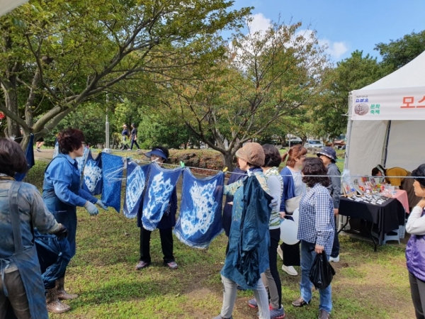 구성원의 다양한 아이디어 창작 작품에는 화학약품을 사용하지 않고 감, 쪽, 양파 등을 이용해 제주 자연의 색을 담아냈다. 이런 염색기법에 멋을 더해 얼룩지고 멀쩡하게 버려지는 옷이 새롭게 탄생한다.
