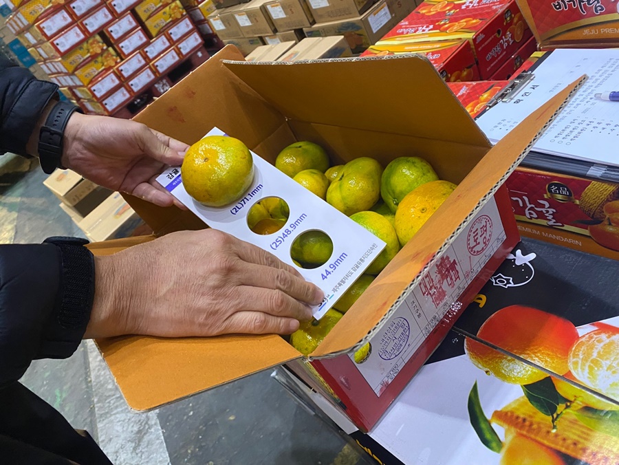 적발 사항은 △감귤 상품가격 크기 초과(71㎜, 극대과) 9건·1.5톤 △감귤 상품가격 크기 미만(45㎜, 극소과) 13건·1.7톤이다.