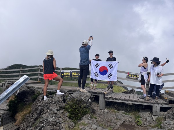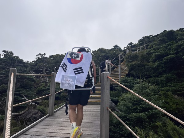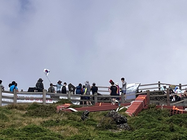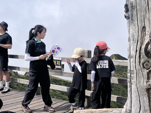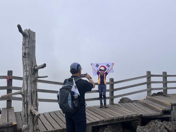한 탐방객은 아이스크림이 가득 들어있는 아이스박스를 등에 메고 한라산을 오르며 다른 탐방객들과 광복의 의미를 함께 나누기도 했다.