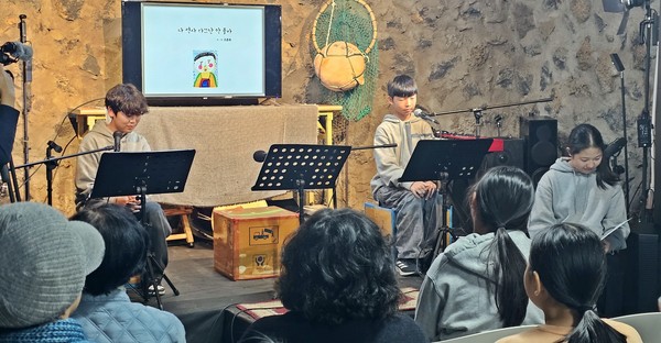 수산초등학교(교장 김경화) 6학년 학생들은 지난 23일 ‘공간믈미’에서 학교‧마을이 함께 준비한 낭독극 ‘우린 영 살아쩌’를 공연했다.