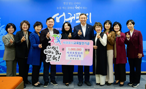국제로타리 3662지구 서귀포칠십리로타리클럽(회장 한순자)은 24일 서귀포시청 접견실에서 (재)서귀포시교육발전기금에 서귀포시교육발전기금 100만원을 기탁했다.
